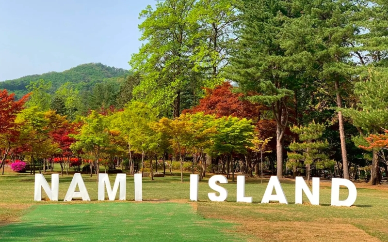 - Đảo Nami nổi tiếng nhất là những hàng ngân hạnh thẳng tắp đã từng xuất hiện trong bộ phim “Bản tình ca mùa đông”. Cách thủ đô Seoul 63km về phía Đông, hòn đảo Nami như một chiếc lá khổng lồ nằm bình yên trên dòng sông Heongpyung thơ mộng.