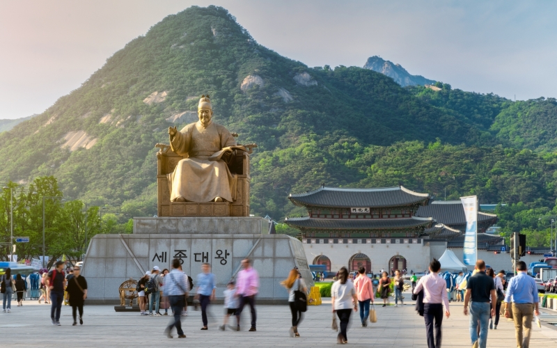 - Quảng Trường Gwanghwamun Chính quyền Seoul quy hoạch nơi này thành điểm nhấn chính cho thành phố, tọa lạc trên mảnh đất rộng 340m, dài 557m với các công trình đa dạng như đài phun nước, thảm hoa, cây xanh,… Đây là một trong những niềm tự hào của người dân Seoul.