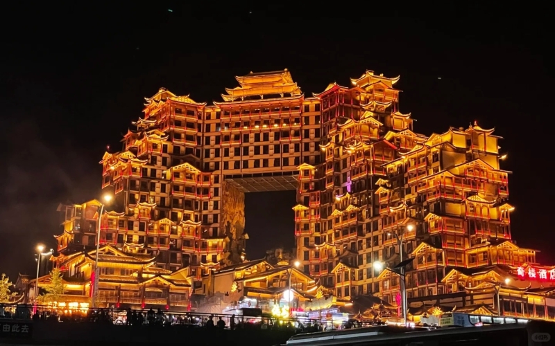 - Check-in 72 Kỳ Lầu được xây dựng dựa trên truyền thuyết ở khu vực Vũ Lăng Sơn những câu chuyện về 9 cung, 18 làng và tòa nhà 72 tầng kỳ lạ đã truyền tai nhau rất nhiều. Và tòa nhà 72 tầng được nhắc đến trong câu chuyện đó thực chất là những ngôi nhà truyền thống theo kiến trúc Điếu Cước Lâu – một phong cách được phát triển bởi người dân tộc Miêu và Thổ Gia (chụp ảnh bên ngoài)