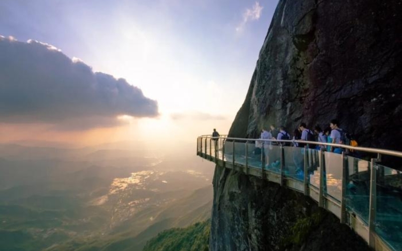 - Cầu kính Đại Hiệp Cốc + trải nghiệm kính VR (chi phí tự túc) Cây cầu đáy kính nổi tiếng này rộng 6m, dài 430m, bắc qua 2 vách đá ở độ cao 300 m và nhìn xuống công viên Trương Gia Giới.