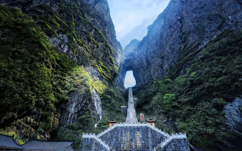 - Cổng trời hay còn gọi là Động Thiên Môn khi lên đến đỉnh của Thiên Môn Sơn, Quý khách sẽ được trải nghiệm cảm giác bước đến "bồng lai tiên cảnh" đầy mê hoặc với những con đường bao quanh các đỉnh núi, xuyên từ đỉnh núi này sang đỉnh núi khác. Tại đây, du khách cũng có thể vượt qua 999 bậc thang để đến Cổng trời để nhìn ngắm vẻ đẹp tuyệt diệu của thiên nhiên.