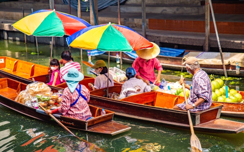 - Chợ Nổi Bốn Miền bao trùm cả một khu vực có diện tích lên đến 100.000m2. Chợ Nổi 4 miền (Four Regions Floating Market) là một trong những chợ nổi Pattaya nổi tiếng nhất, tại đây quý khách tự do mua sắm và thưởng thức các món ăn đặc sản Thái Lan.
