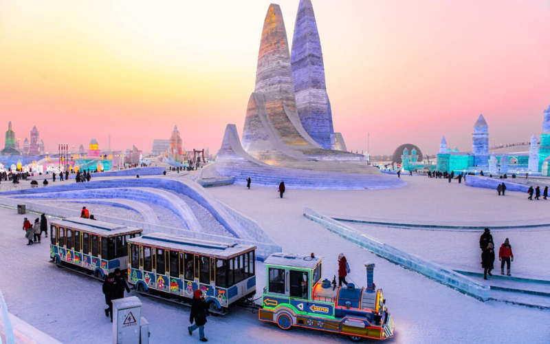 - Thế giới băng tuyết được thành lập năm 1999. Đây là một dự án nghệ thuật băng đăng và tuyết quy mô lớn do Chính quyền thành phố Cáp Nhĩ Tân tổ chức là khu triển lãm băng trong nhà và ngoài trời có diện tích lớn nhất với số lượng tác phẩm nhiều nhất trên thế giới. Quý khách đến đây vào mỗi dịp lễ hội băng đăng được tổ chức hàng năm sẽ tận hưởng được cảm giác như lạc bước vào xứ sở thần tiên mùa đông, choáng ngợp trước những cung điện băng lộng lẫy, những tượng đài tráng lệ và vô số tác phẩm nghệ thuật độc đáo được tạo nên từ băng tuyết dưới ánh đèn nhiều màu sắc rực rỡ, cùng với sân khấu giao lưu âm nhạc vui nhộn. Đặc biệt, mỗi năm, lễ hội sẽ được tổ chức với một chủ đề khác nhau, mang lại sự thích thú cho du khách.