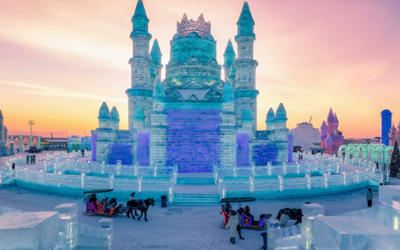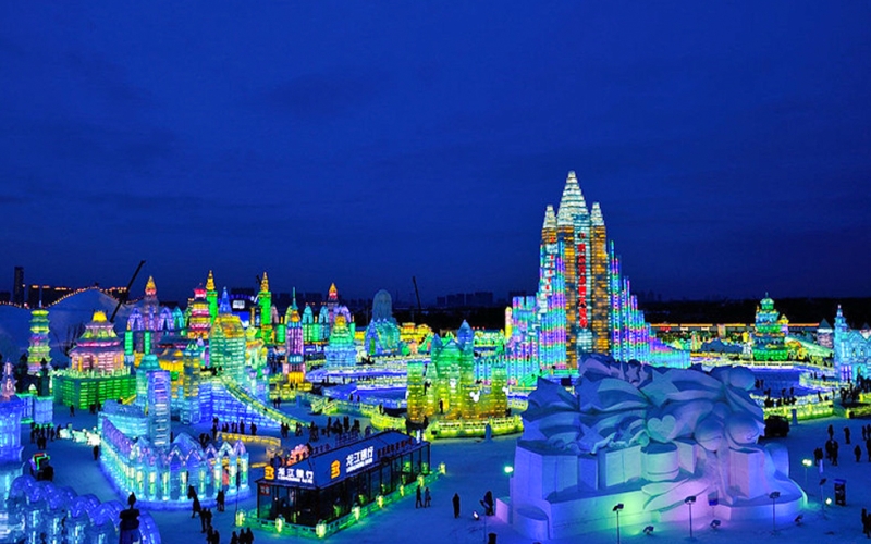 - Thế giới băng tuyết được thành lập năm 1999. Đây là một dự án nghệ thuật băng đăng và tuyết quy mô lớn do Chính quyền thành phố Cáp Nhĩ Tân tổ chức là khu triển lãm băng trong nhà và ngoài trời có diện tích lớn nhất với số lượng tác phẩm nhiều nhất trên thế giới. Quý khách đến đây vào mỗi dịp lễ hội băng đăng được tổ chức hàng năm sẽ tận hưởng được cảm giác như lạc bước vào xứ sở thần tiên mùa đông, choáng ngợp trước những cung điện băng lộng lẫy, những tượng đài tráng lệ và vô số tác phẩm nghệ thuật độc đáo được tạo nên từ băng tuyết dưới ánh đèn nhiều màu sắc rực rỡ, cùng với sân khấu giao lưu âm nhạc vui nhộn. Đặc biệt, mỗi năm, lễ hội sẽ được tổ chức với một chủ đề khác nhau, mang lại sự thích thú cho du khách.