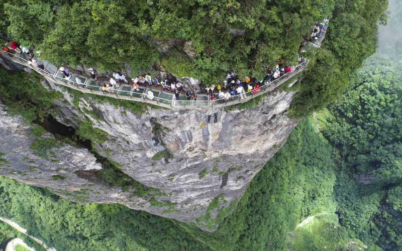 - Cầu kính Đại Hiệp Cốc + trải nghiệm kính VR (chi phí tự túc) cây cầu kính nổi tiếng rộng 6m, dài 430m, bắc qua 2 vách đá ở độ cao 300m và nhìn xuống công viên Trương Gia Giới.