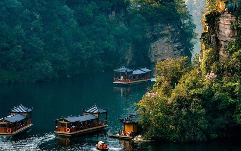 - Hồ Bảo Phong nơi từng được sử dụng làm bối cảnh đóng phim Tây Du Ký, là một hồ nước ngọt nằm trong khu thắng cảnh Vũ Lăng Nguyên gần Trương Gia Giới. Quý khách ngồi thuyền tham quan cảnh Hô Trên Núi và nghe những khúc "Dao Trì Nhân Gian" du dương của người dân bản địa... Thả thuyền trên hồ Bảo Phong, du khách sẽ có cơ hội thưởng thức phong cảnh đẹp như tranh vẽ của những rặng núi xanh ngắt hai bên bờ (bao gồm xe du chuyển + du thuyền)