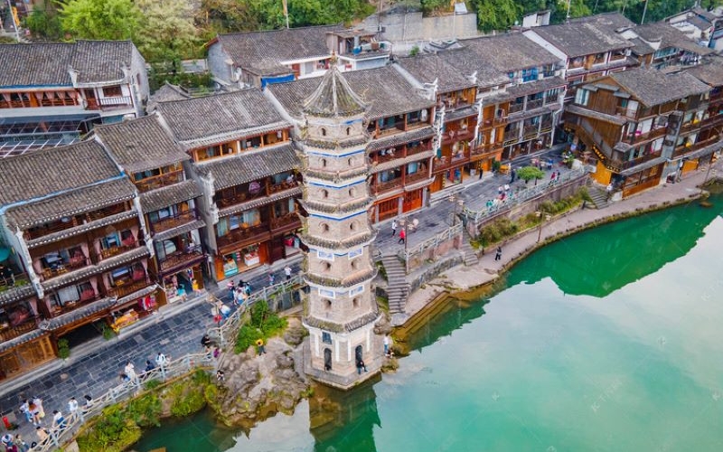 - Phượng Hoàng Cổ Trấn với loạt cảnh quan như: Tháp Vạn Danh, khu cảnh điểm Sa Loan, cầu Đá Nhảy, phố cổ lát đá tấm... Tự do tham quan và khám phá Phượng Hoàng Cổ Trấn với các món ăn địa phương. Quý khách ghi lại những bức hình đẹp nhất tại cổ trấn 1300 năm hình thành và phát triển, khám phá một bảo tàng sống về văn hoá của các dân tộc; cũng như ngắm nhìn những thành quách, những dãy phố, nhưng căn nhà cổ, gia trang, văn miếu, đền chùa đậm dấu ấn của người Trung Hoa chảy qua và để lại những giá trị truyền thống đẹp đẽ nhất. Hơn cả, Phượng Hoàng Cổ Trấn còn hút hồn du khách ngay từ ánh nhìn đầu tiên đến khi rời bước bởi cảnh sắc hoa lệ, đẹp như một bức tranh thuỷ mặc.