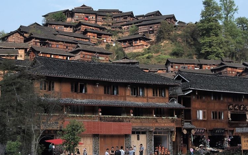 Trưa: Đoàn dùng bữa trưa tại nhà hàng địa phương mang phong cách Trường Long và có cơ hội tìm hiểu phong tục chặn cửa đón khách. Đây là nét đẹp văn hoá đặc trưng của người dân tộc Miêu bản địa.
