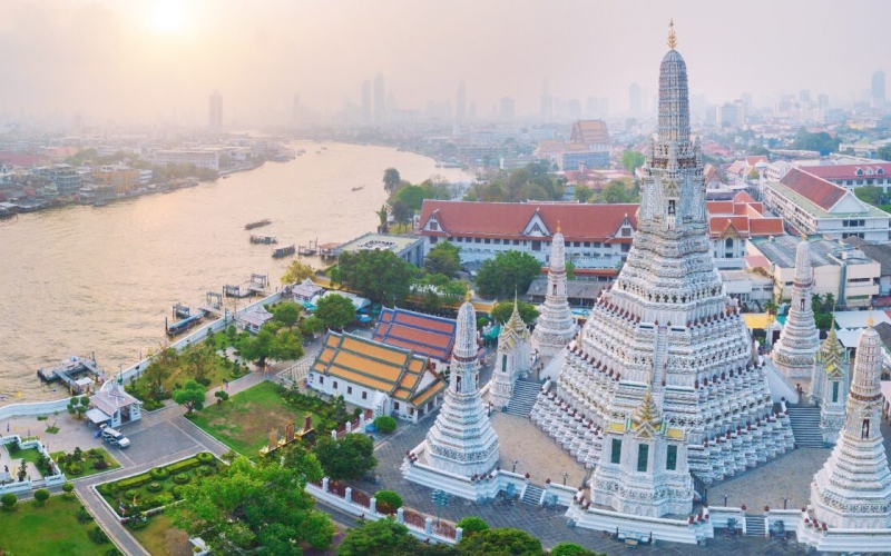 - Wat Arun còn có tên gọi khác là chùa Bình Minh. Vì mỗi buổi sáng, đây là nơi đầu tiên đón ánh sáng mặt trời mọc bên bờ sông Chao Phraya. Không chỉ là ngôi chùa với kiến trúc khảm sành sứ đặc sắc mà còn là ngôi chùa linh thiêng bậc nhất xứ sở chùa vàng Thái Lan.