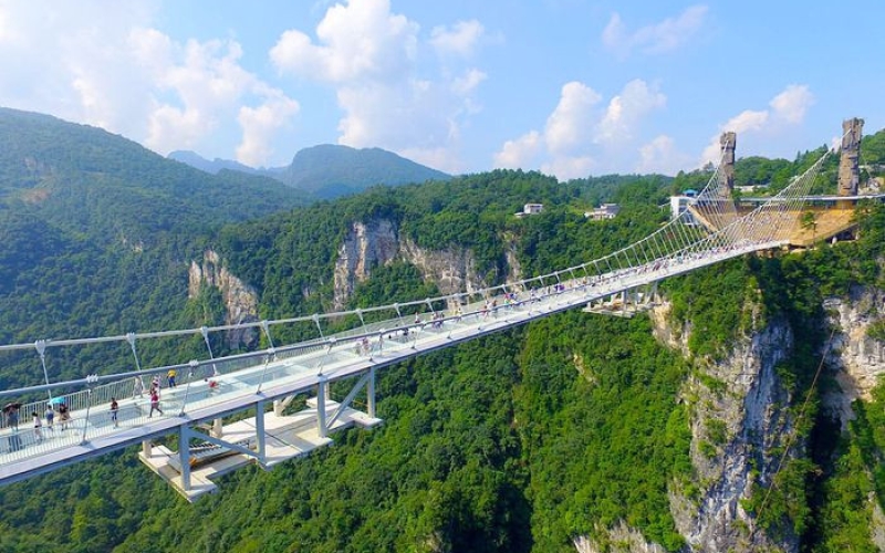 - Cầu kính Đại Hiệp Cốc + trải nghiệm kính VR (chi phí tự túc) cây cầu kính nổi tiếng rộng 6m, dài 430m, bắc qua 2 vách đá ở độ cao 300m và nhìn xuống công viên Trương Gia Giới.