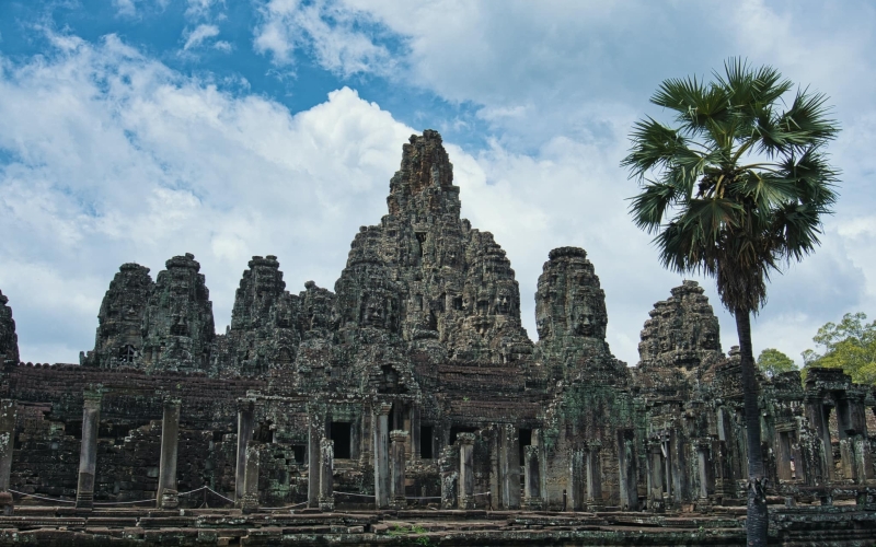 - Đền Bayon thuộc khu vực trung tâm của cổng nam đền Angkor Thom với 216 nụ cười bí ẩn. Tượng Bayon 4 mặt thể hiện “hỷ, nộ, ái, ố” trên từng nét mặt, với những tranh điêu khắc dài hàng trăm mét diễn tả lịch sử và xã hội Khmer thời xa xưa. Chiêm ngưỡng nghệ thuật kiến trúc Angkor hùng vĩ. Xe đưa quý khách đi ngang qua quảng trường đấu Voi – nơi tổ chức các lễ hội truyền thống của Người Khmer cổ, tháp 12 con giáp,….